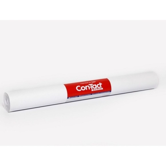 Ideal para proteger livros, cadernos, vidro, parede, madeira / Cor branco opaco / Composição: PVC, adesivo e papel / Medidas: 45cm x 10m