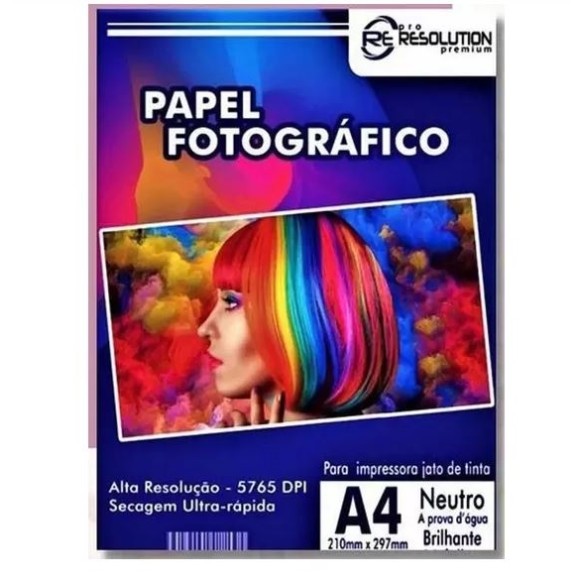 Papel fotográfico adesivo brilhante / Para impressoras jato de tinta / Gramatura: 150g/m² / Formato: A4 / Medidas: 210mm x 297mm.