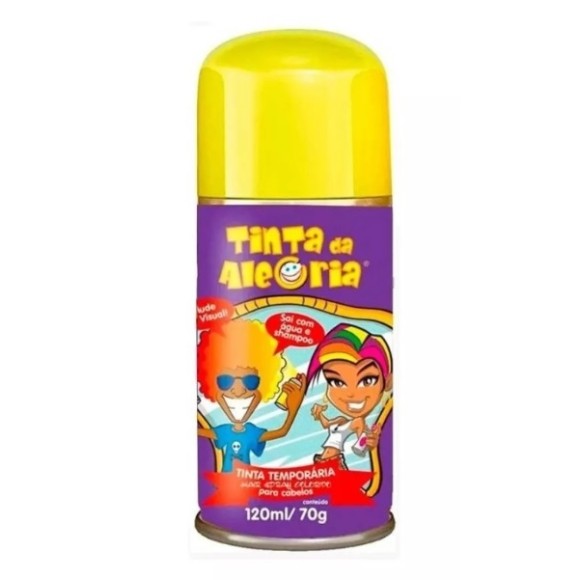Como usar: Agite bem a embalagem antes e durante o uso. Aplique a Tinta da alegria em movimentos circulares, segurando a lata na posição vertical a 20cm do cabelo, evitando o contato do produto com o dedo. O gás em contato prolongado com a pele pode causar a formação de bolhas e/ou queimaduras. A aplicação com distância inferior à recomendada pode danifica o cabelo. Nunca usar a lata de cabeça para baixo. Não utilizar se o couro cabeludo estiver irritado ou lesionado. Após aplicação esperar 2 minutos para que o produto seque.