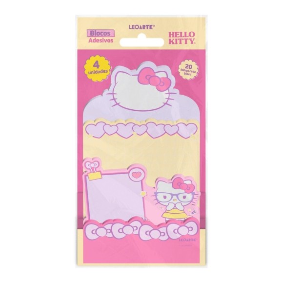 O Bloco Adesivo Hello Kitty Camadas Leo&Leo traz toda a alegria da personagem mais fofa do mundo. Com 4 blocos com formatos diferentes, ele é perfeito para anotar lembretes, deixar recados e rabiscar ideias de maneira divertida e encantadora. Posicionado em camadas, são 20 folhas em cada bloco, todos coloridos e com formas diferentes umas das outras.