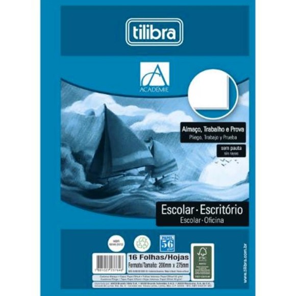 Folhas Sem Pauta / Formato: 200mm x 275mm / Gramatura: 56g/m² / Embalagem Com 16 Folhas