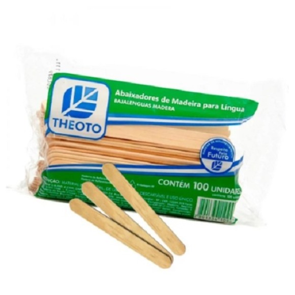 PALITO ABAIXADOR DE MADEIRA PARA LÍNGUA COM 100 UNIDADES THEOTO