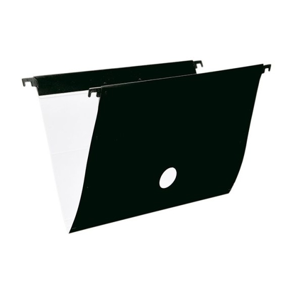 Pasta suspensa resistente plastificada (275g/m²). Acompanha visor e etiqueta, grampo plástico e hastes plásticas removíveis. Possui 8 posições para grampo e 2 posições para arquivo de saco plástico. Arquiva dois ou mais documentos na mesma pasta e possui visualização de documentos e sistema de circulação de ar dentro da pasta através do furo central.