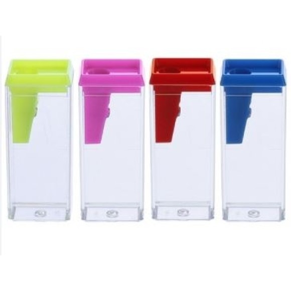Caixa de Apontadores de Plástico com Depósito / Contém 24 Unidades / Cores: Azul, Rosa, Vermelho e Amarelo / Registro INMETRO: 007859/2017 OCP 0133