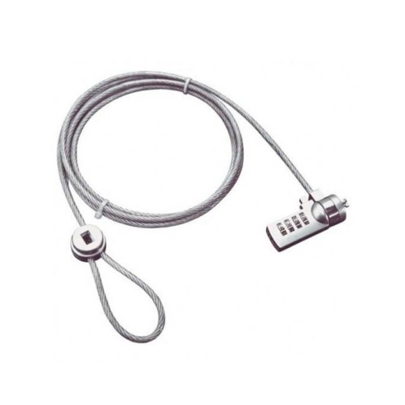 Combinação secreta de 4 dígitos / Cabo confeccionado em aço de 3mm de espessura e fechadura em zinco / Ideal para todos os tipos de notebook, monitor LCD, Data show, Tablet e demais dispositivos eletrônicos portáteis / Revestimento do cabo em PVC para proteção contra riscos e danos / Comprimento do cabo 1,80m.