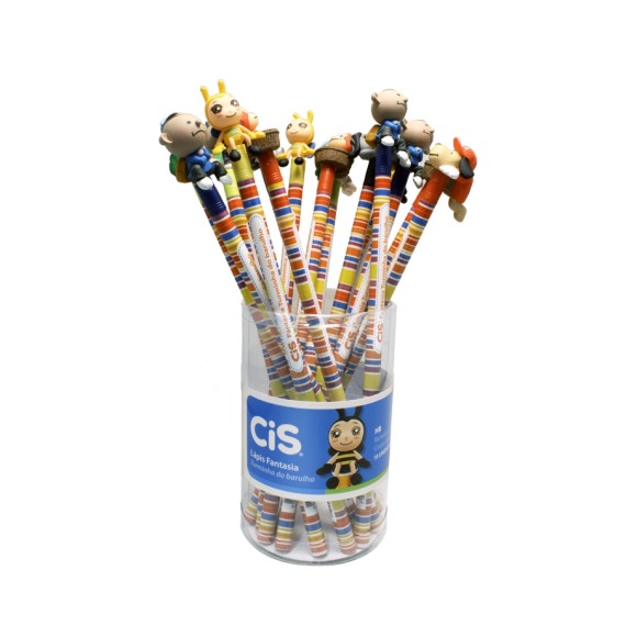 Lápis grafite HB / Possui personagens decorativos no topo / Formato do corpo redondo decorado / Valor por unidade / Registro Inmetro: 003612/2014, OCP0061.