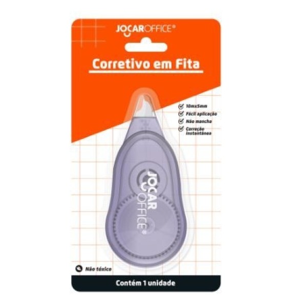 A Fita Corretiva 10m x 5mm Jocar Office é a solução para correções rápidas e precisas / Com um design prático e fácil de usar, esta fita corretiva evita sujeira e não mancha, garantindo um acabamento limpo e profissional em seus documentos / Disponível em três cores de corpo: azul, verde e roxo / Produto Certificado INMETRO (Artigo Escolar/Segurança) – Registro 001601/2024