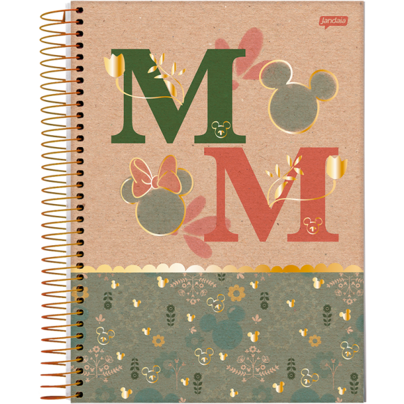 Detalhes: Base kraft / Capa dura / Capa com detalhe metalizado / Espiral colorido / Parte interna da capa decorada / Bolsa de papel decorada kraft / Folha de adesivos / Índice/separador de matérias decorados / Folhas pautadas decoradas / Folhas em papel creme / 10 Matérias / Formato: 200mm x 275mm / Gramatura: 56g/m² / 160 Folhas.