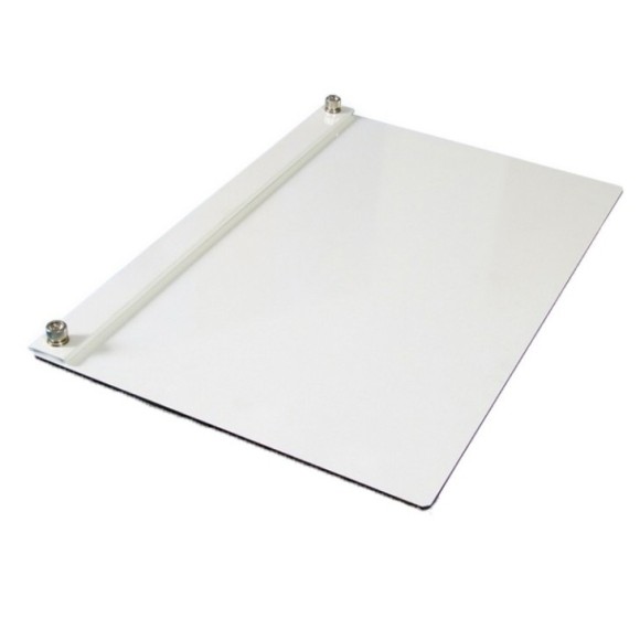 Modelo simples com prendedor de metal esmaltado e parafusos cromados. Prende com mais firmeza.