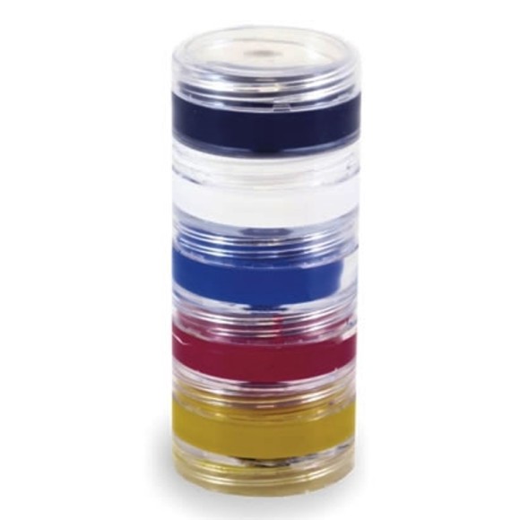 Tinta Facial Cremosa Cores Primárias / Contém 5 Frascos de Tinta 4g Cada / Cores: Branco, Amarelo, Azul, Vermelho e Preto