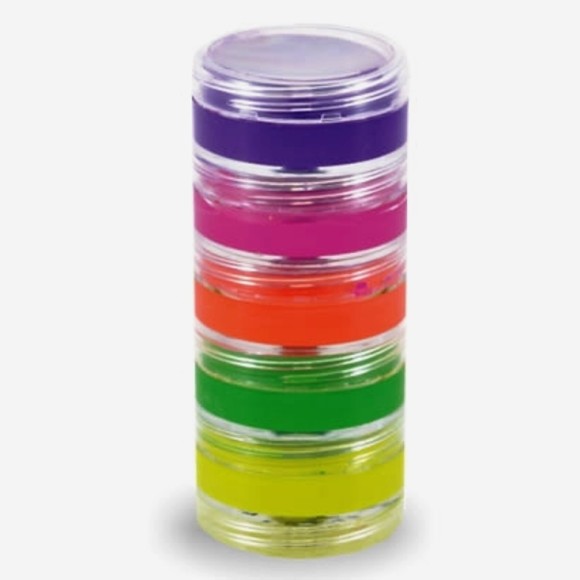 Tinta Facial Cremosa Cores Fluorescentes / Contém 5 Frascos de Tinta 4g Cada / Cores: Rosa Fluorescente, Laranja Fluorescente, Amarelo Limão, Verde Limão e Azul Fluorescente